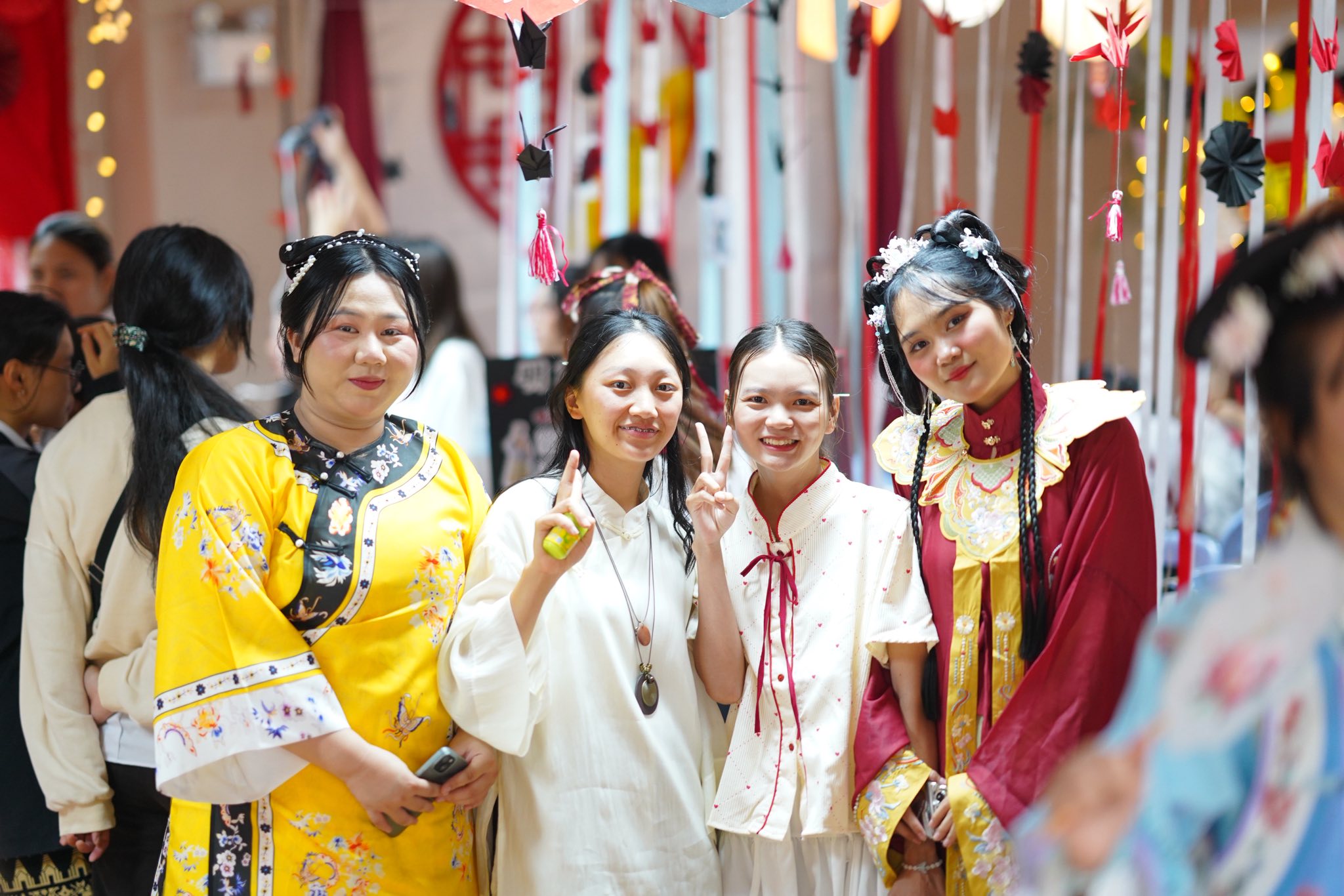 活动期间,同学们还亲自为校领导介绍各自负责的文化展区,展现了扎实的知识与出色的表达能力。前来参观的师生与社会大众不仅能现场品尝各类中式美食,还可亲手体验制作灯笼、剪纸、香囊等传统手工艺,在轻松有趣的氛围中收获与中国文化相关的宝贵知识与独特体验。参观之余,嘉宾们还可以步入体育馆,欣赏丰富多彩的音乐与舞台表演,沉浸式感受一场精彩纷呈的中国文化之旅。✨✨✨