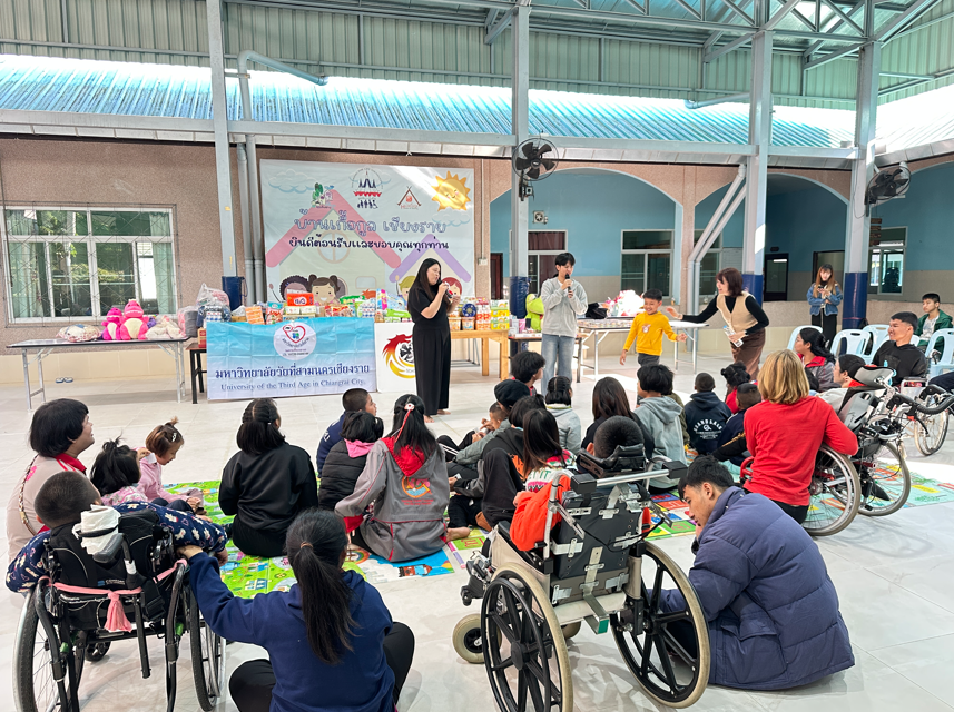 今年活动的特别之处在于,第三年龄大学(老年大学)学员代表,作为学院长期而紧密的合作伙伴,应邀参与活动,并以向卡米连关怀之家清莱分院捐赠生活用品的方式,共同传递分享与关怀的力量,展现了跨世代携手投身社会公益的温馨图景。
