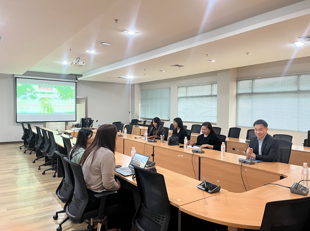 ???????? On 9 February 2026, the School of Sinology welcomed representatives from WTT Electronics Co., Ltd. for a meeting to discuss potential collaboration on student internship programs. The discussion focused on accepting students for internships, identifying suitable positions aligned with students’ knowledge and competencies, and exchanging views on future directions for cooperation.